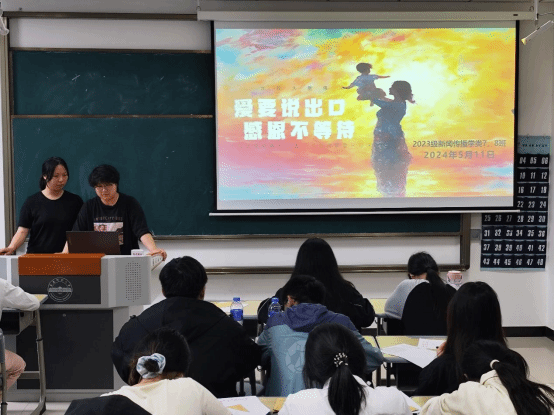 “同學(xué)們,猜一猜明天是什么節(jié)日啊?”“母親節(jié)!”5月11日,新聞傳播學(xué)類專業(yè)2023(7)、(8)班在K202教室開展以“愛要說(shuō)出口,感恩不等待”為主題的團(tuán)建活動(dòng)。活動(dòng)開始前,活動(dòng)負(fù)責(zé)人、新聞傳播學(xué)類專業(yè)2023(7)、(8)班的班長(zhǎng)楊雨霏、朱研溪提前為每位同學(xué)準(zhǔn)備好信紙和信封。朱研溪說(shuō):“我們希望通過(guò)寫信這種傳統(tǒng)而深情的溝通方式,讓同學(xué)們勇敢表達(dá)自己的心聲,將對(duì)母親的愛訴說(shuō)于筆尖。”學(xué)生們觀看一段關(guān)于母愛的感人短片后,...